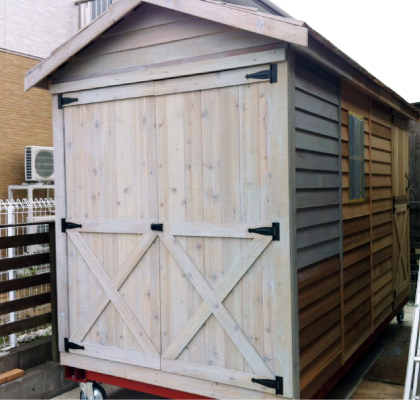 別荘地にも似合う外観で緑にうまく馴染みます。趣味の道具や色んな物置小屋としてや、